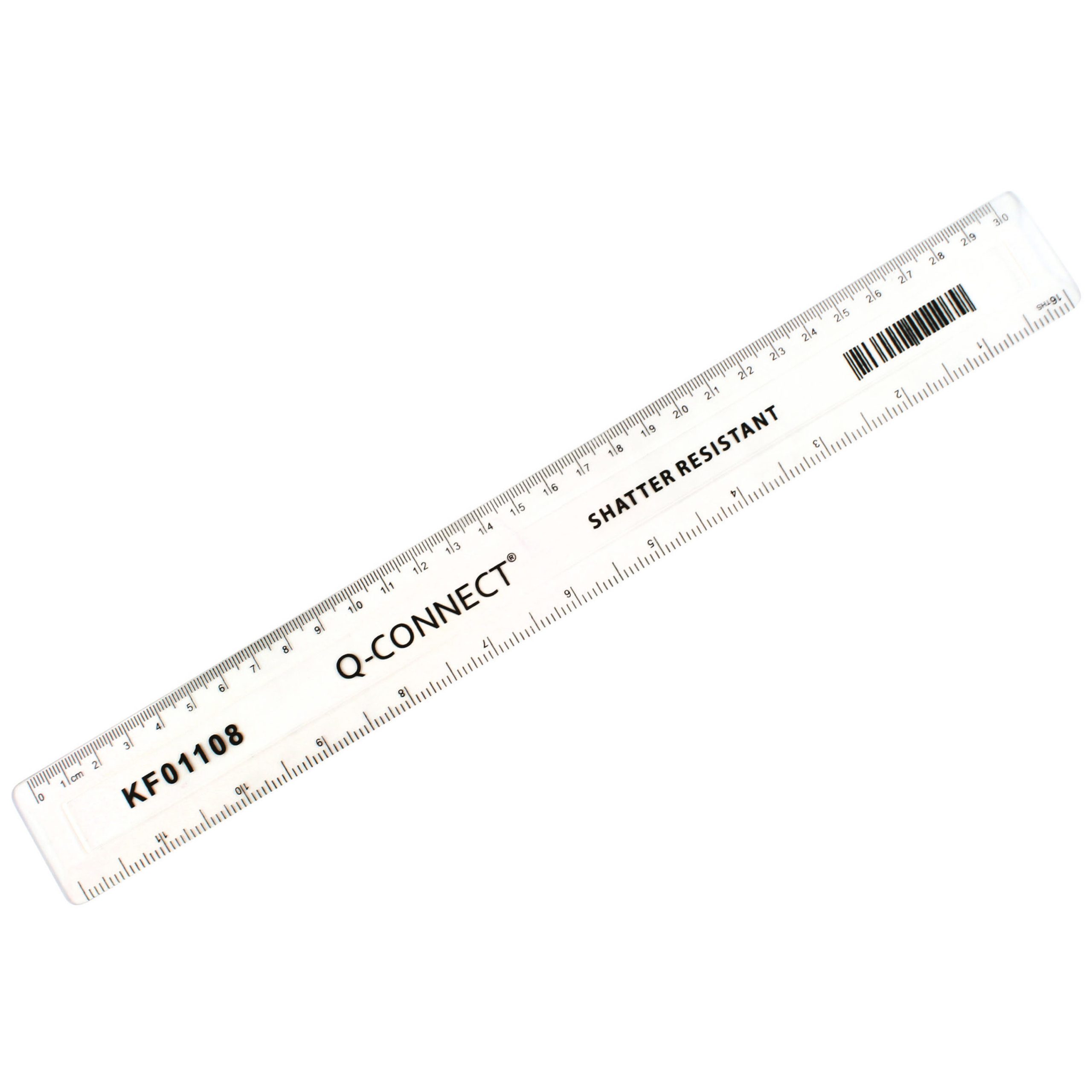 Q-Connect Ruler Shatterproof 300mm Clear (Inches on one side and cm/mm on the other) KF01108